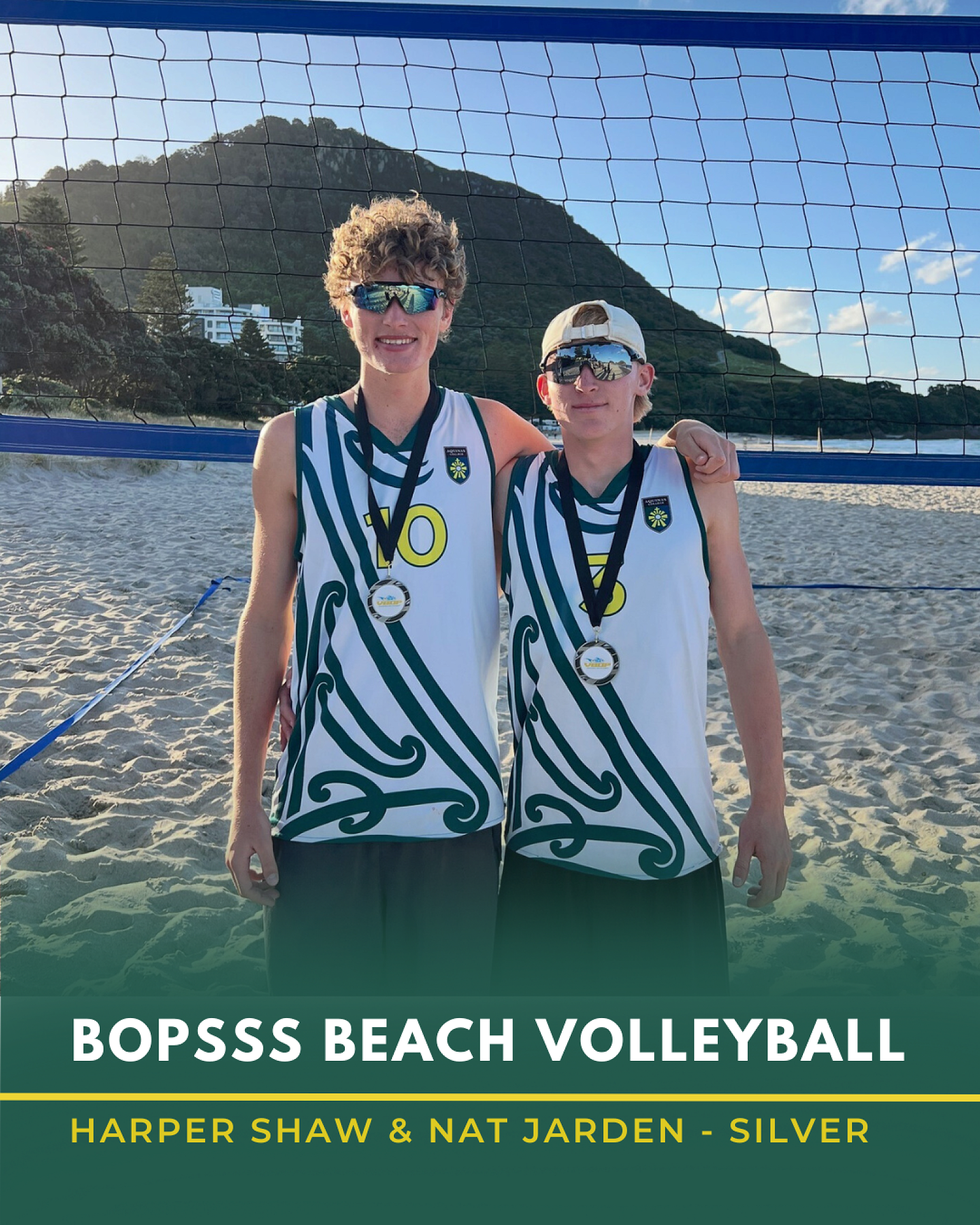 A superb showing from our senior beach volleyballers at the BOP Champs on Mount Maunganui beach! Congratulations to Nat Jarden & Harper Shaw (Yr 12) on winning silver, and to Aiden Couch & Luke Ryder (Yr 12) for securing bronze. Brilliant effort all round.