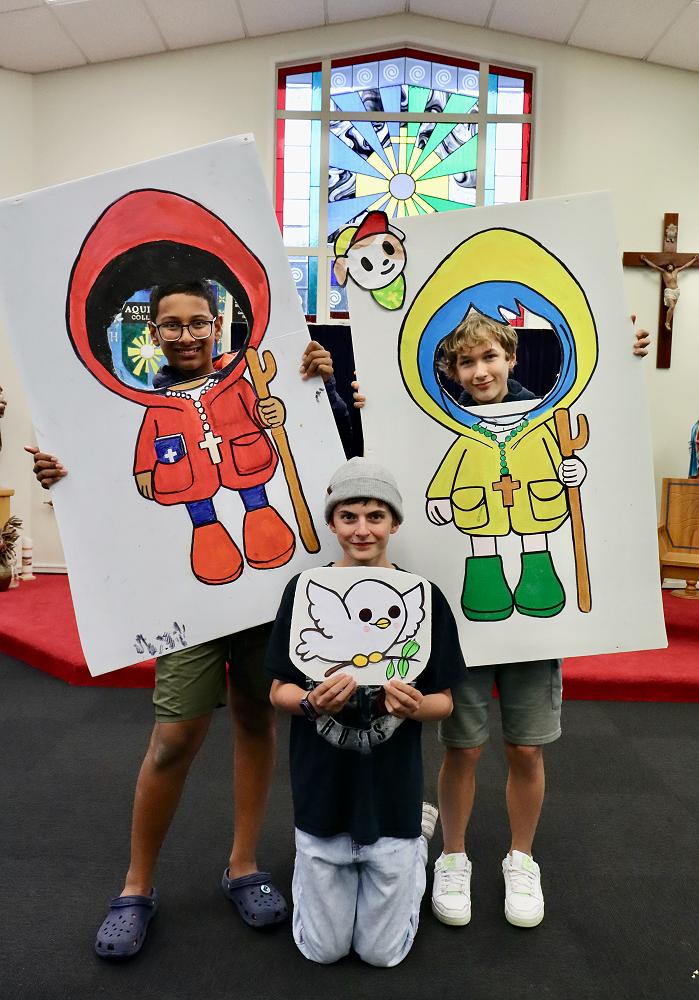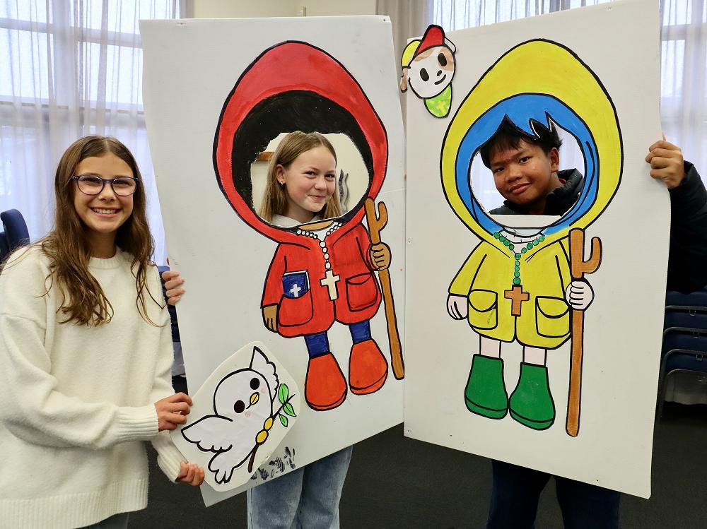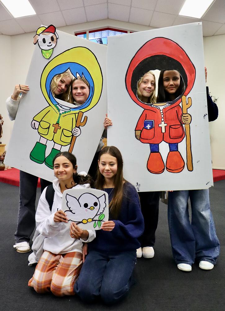 As a fun extra, students were also treated to a visit from Luce and Fe, two of the official mascots for the Vatican’s 2025 Jubilee – Pilgrims of Hope. They made popular photo-op guests, thanks to the fantastic photo booths created by our student-led Special Character Committee, which also organised the day’s activities.