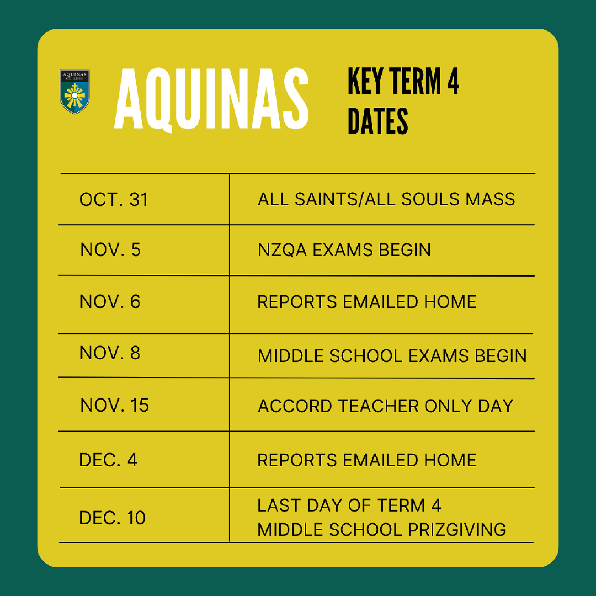 Key Dates for Term 4