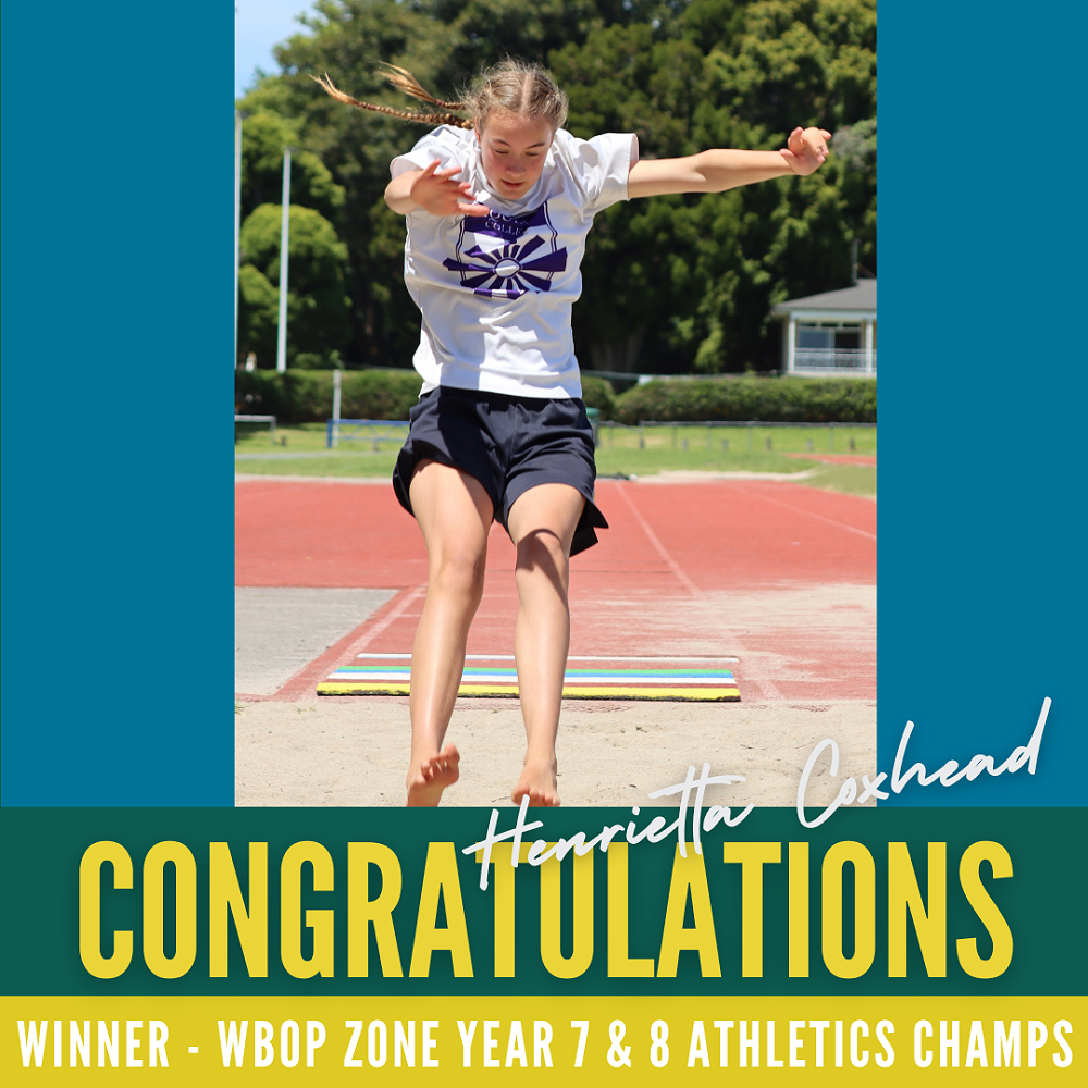 Congratulations to junior athlete Henrietta Coxhead, who was crowned Western BOP Year 7 girls long jump and shot put champion.